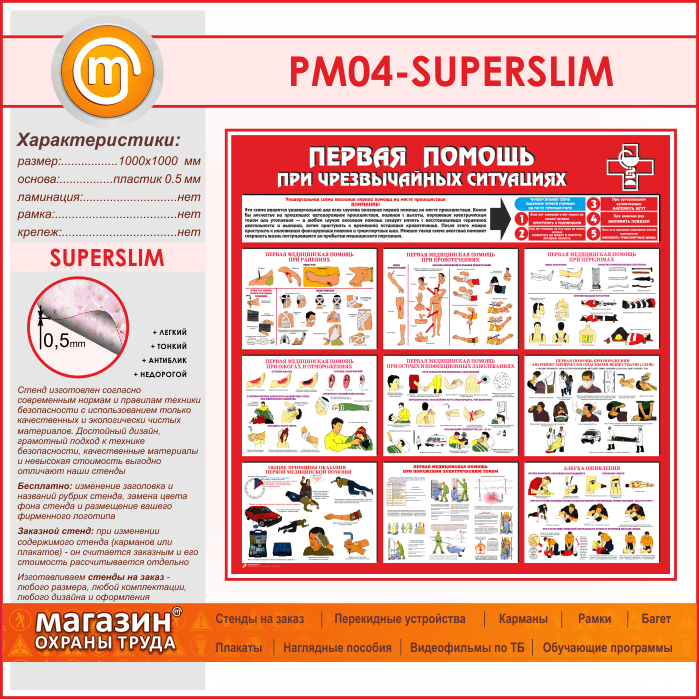 Стенд «Первая помощь при чрезвычайных ситуациях» (PM-04-SUPERSLIM) в Новокузнецке купить