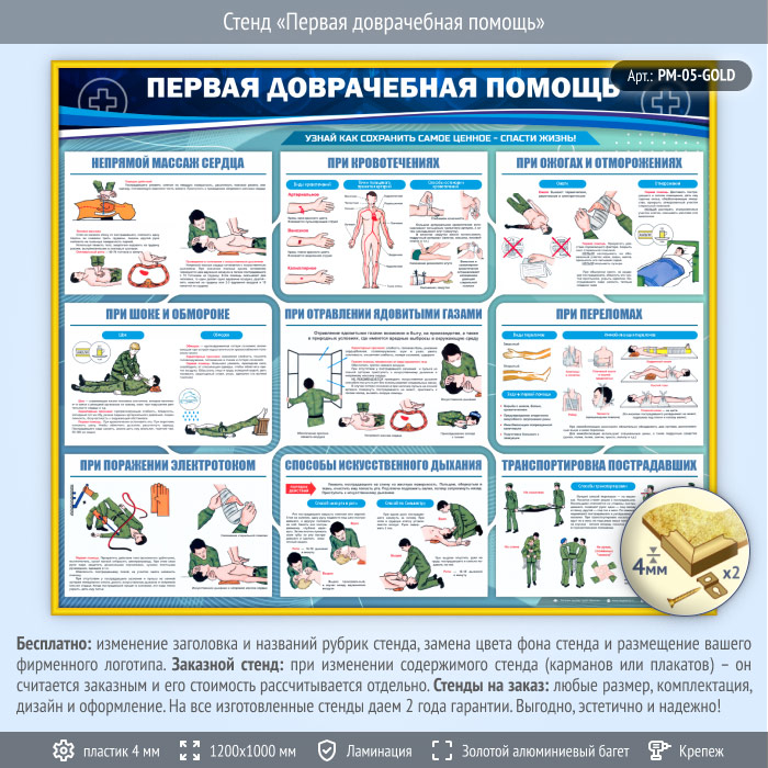 Стенд «Первая доврачебная помощь» (PM-05-GOLD) в Новокузнецке купить