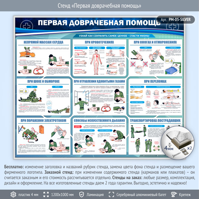 Стенд «Первая доврачебная помощь» (PM-05-SILVER) в Новокузнецке купить