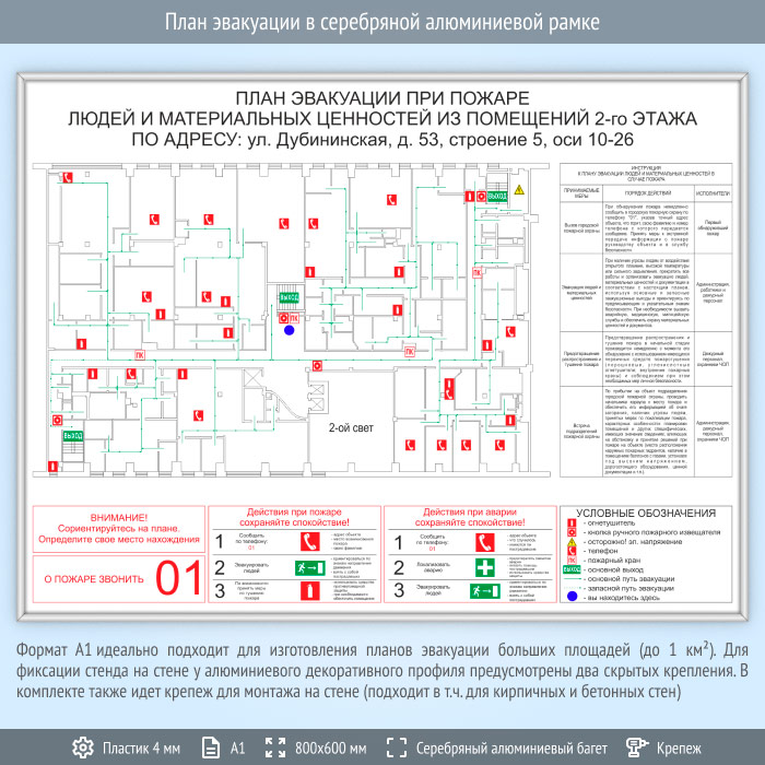 План эвакуации в серебряной алюминиевой рамке (А1 формат) в Новокузнецке купить