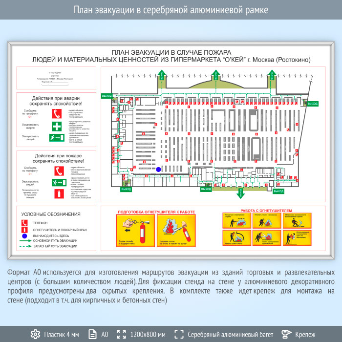 План эвакуации в серебряной алюминиевой рамке (А0 формат) в Новокузнецке купить