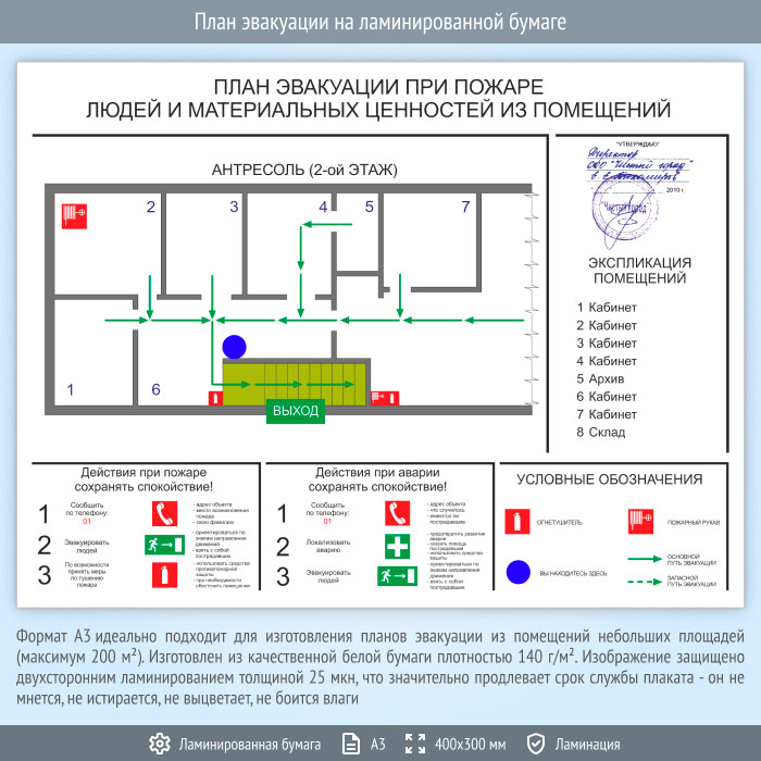 План эвакуации на ламинированной бумаге (А3 формат) в Новокузнецке купить