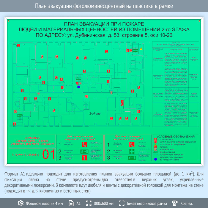 План эвакуации фотолюминесцентный на пластике в рамке (А1 формат) в Новокузнецке купить
