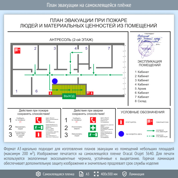 План эвакуации на самоклеящейся плёнке (А3 формат) в Новокузнецке купить