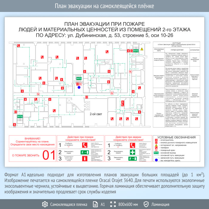 План эвакуации на самоклеящейся плёнке (А1 формат) в Новокузнецке купить