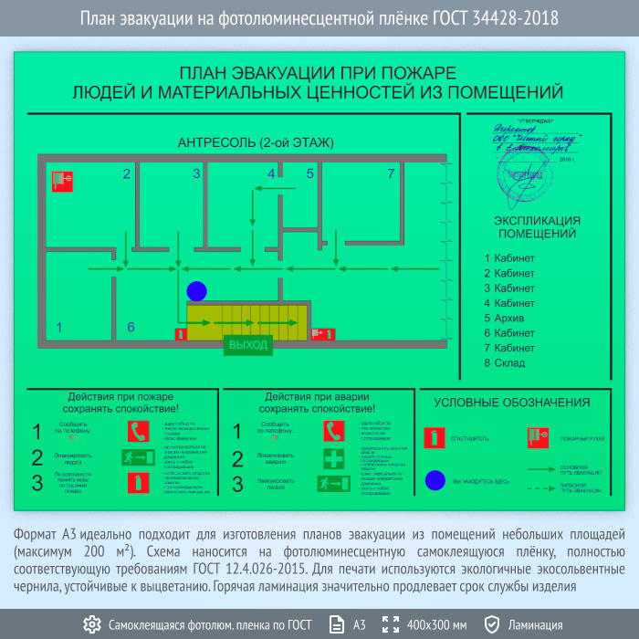 План эвакуации на фотолюминесцентной плёнке ГОСТ 34428-2018 (А3 формат) в Новокузнецке купить