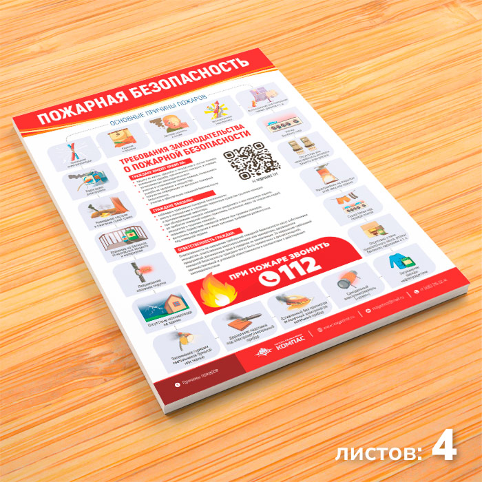 Плакаты «Пожарная безопасность» (М-41, ламинированная бумага, А2, 4 листа) в Новокузнецке купить