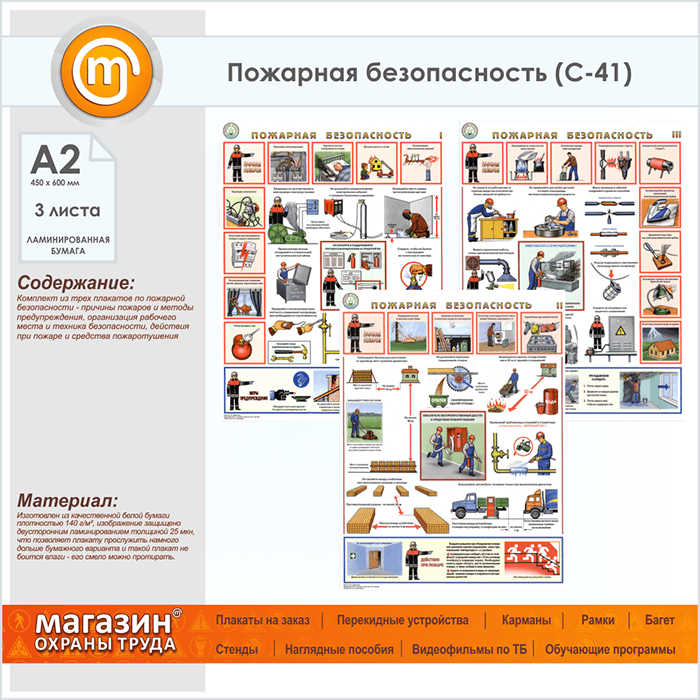 Плакаты «Пожарная безопасность» (С-41, ламинированная бумага, А2, 3 листа) в Новокузнецке купить