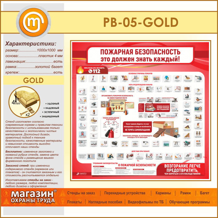 Стенд «Пожарная безопасность. Это должен знать каждый» (PB-05-GOLD) в Новокузнецке купить