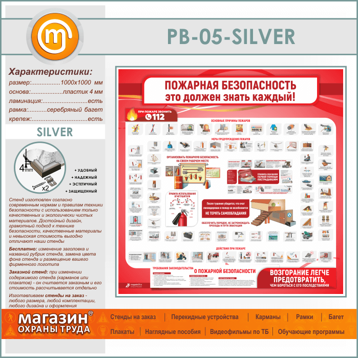 Стенд «Пожарная безопасность. Это должен знать каждый» (PB-05-SILVER) в Новокузнецке купить