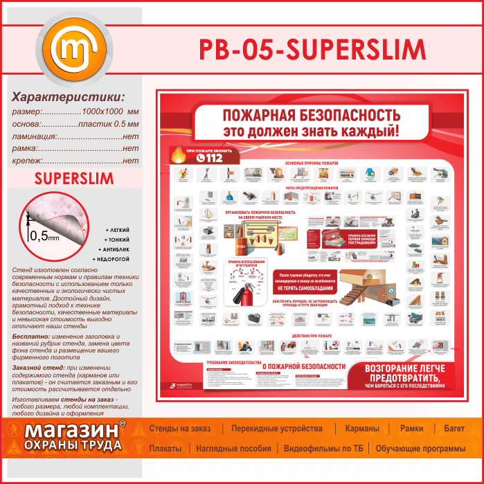 Стенд «Пожарная безопасность. Это должен знать каждый» (PB-05-SUPERSLIM) в Новокузнецке купить