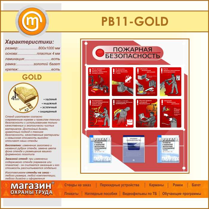 Стенд «Стенд пожарная безопасность в строительстве» с 3 объемными карманами (PB-11-GOLD) в Новокузнецке купить