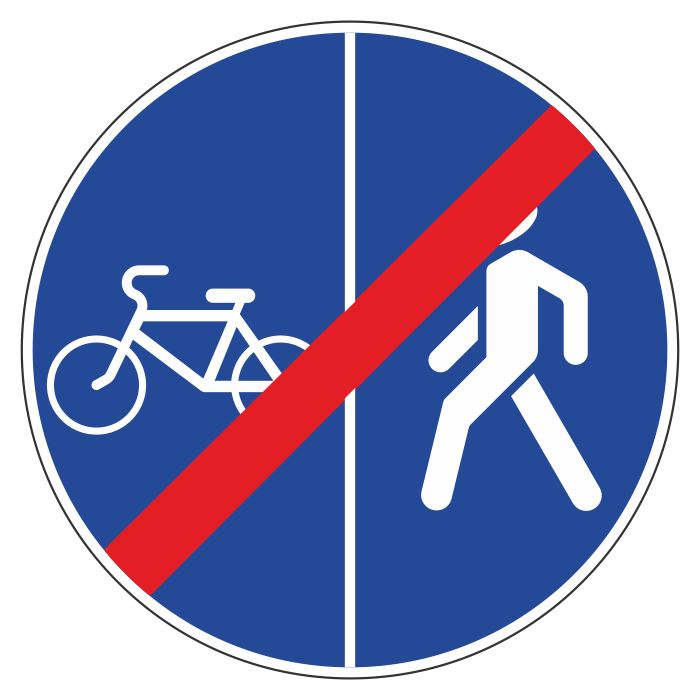 Дорожный знак 4.5.6 «Конец пешеходной и велосипедной дорожки с разделением движения» (металл 0,8 мм, II типоразмер: диаметр 700 мм, С/О пленка: тип А инженерная) в Новокузнецке купить