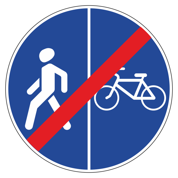 Дорожный знак 4.5.7 «Конец пешеходной и велосипедной дорожки с разделением движения» (металл 0,8 мм, II типоразмер: диаметр 700 мм, С/О пленка: тип А инженерная) в Новокузнецке купить