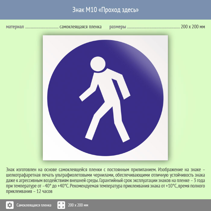 Знак M10 «Проход здесь» (пленка, 200х200 мм) в Новокузнецке купить