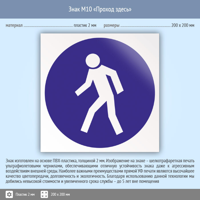 Знак M10 «Проход здесь» (пластик, 200х200 мм) в Новокузнецке купить