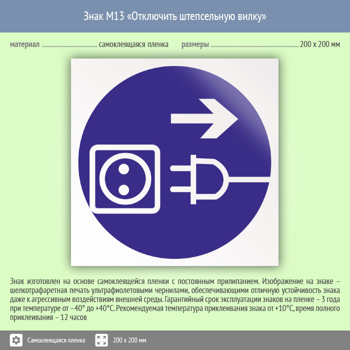 Знак M13 «Отключить штепсельную вилку» (пленка, 200х200 мм) в Новокузнецке купить