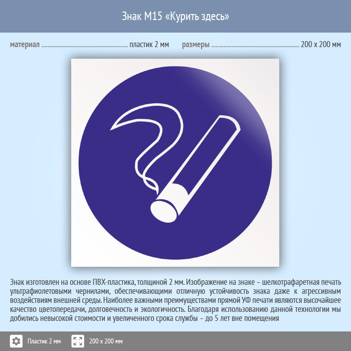 Знак M15 «Курить здесь» (исключен) (пластик, 200х200 мм) в Новокузнецке купить