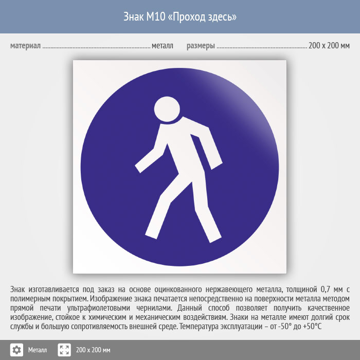 Знак M10 «Проход здесь» (металл, 200х200 мм) в Новокузнецке купить