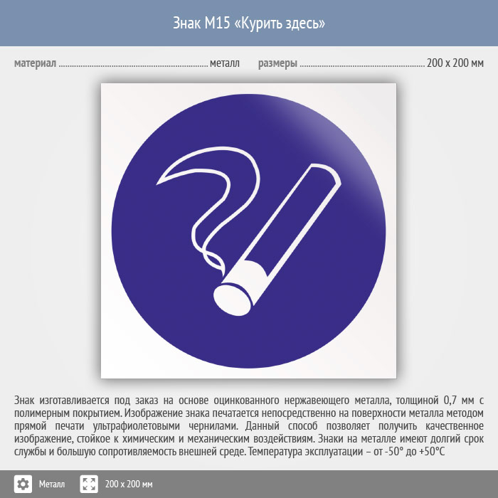 Знак M15 «Курить здесь» (исключен) (металл, 200х200 мм) в Новокузнецке купить