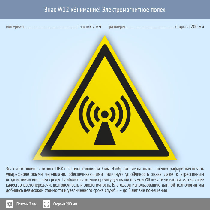 Знак W12 «Внимание! электромагнитное поле» (пластик, сторона 200 мм) в Новокузнецке купить