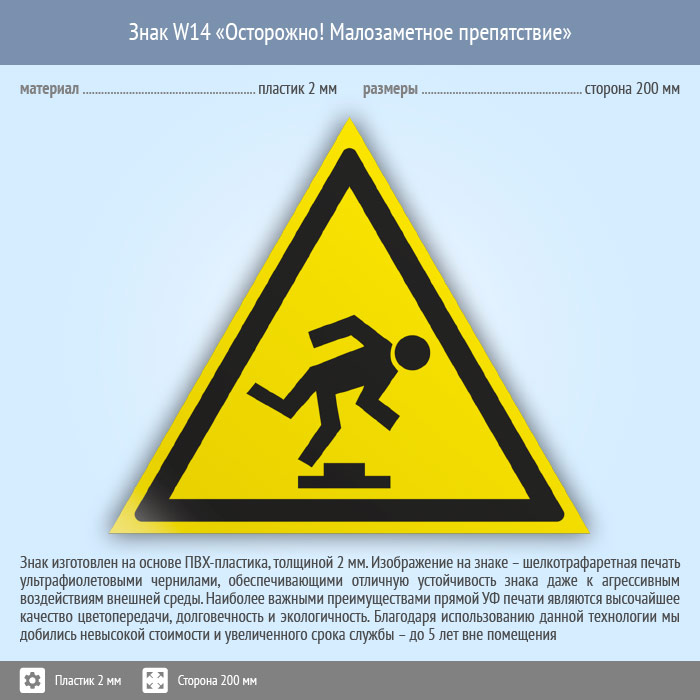 Знак W14 «Осторожно! малозаметное препятствие» (пластик, сторона 200 мм) в Новокузнецке купить