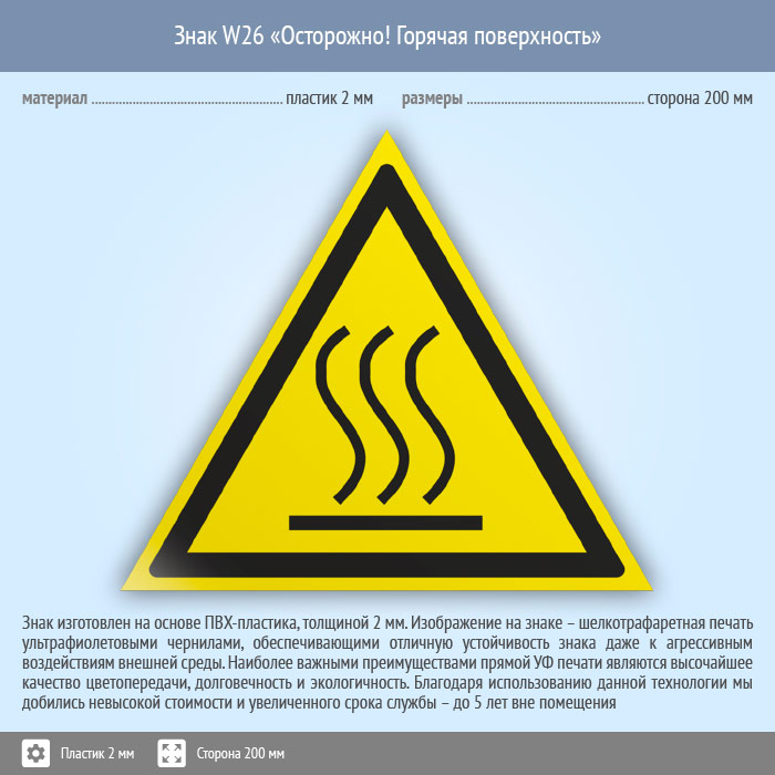 Знак W26 «Осторожно! горячая поверхность» (пластик, сторона 200 мм) в Новокузнецке купить