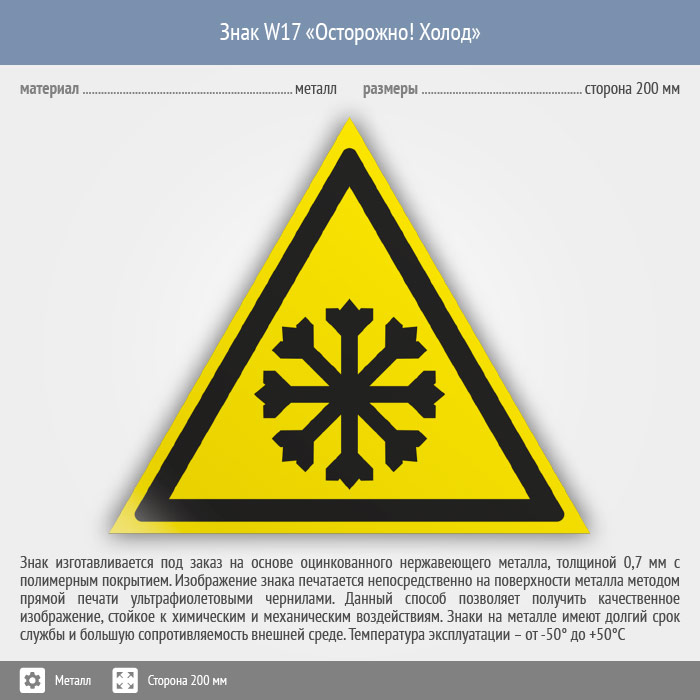 Знак W17 «Осторожно! холод» (металл, сторона 200 мм) в Новокузнецке купить