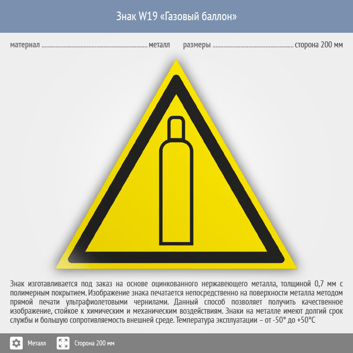Знак W19 «Газовый баллон» (металл, сторона 200 мм) в Новокузнецке купить