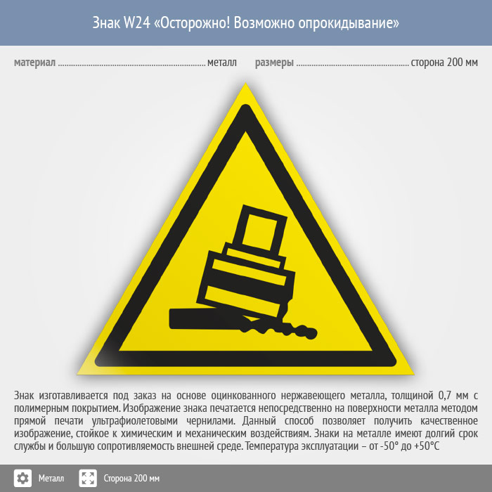 Знак W24 «Осторожно! возможно опрокидывание» (металл, сторона 200 мм) в Новокузнецке купить