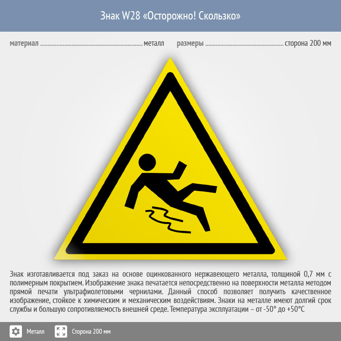 Знак W28 «Осторожно! скользко» (металл, сторона 200 мм) в Новокузнецке купить