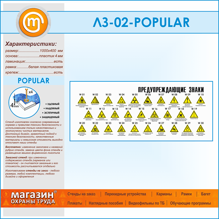 Стенд «Предупреждающие знаки» (LZ-02-POPULAR)