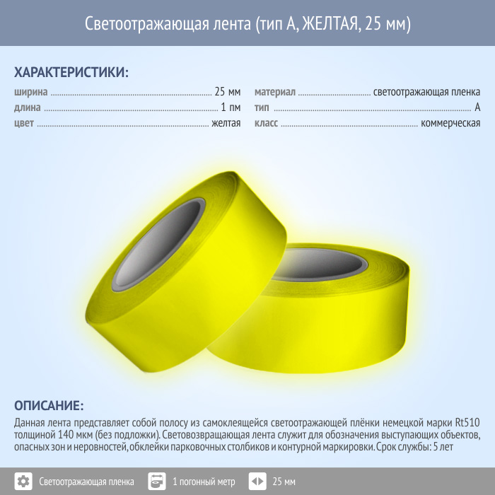 Светоотражающая однородная лента (тип А, ЖЕЛТАЯ, 25 мм х 1 п.м.) в Новокузнецке купить