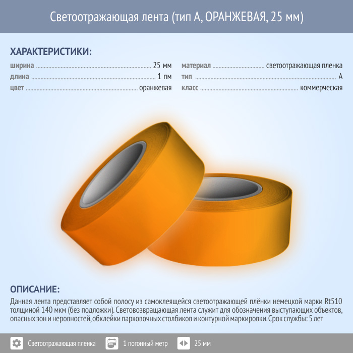 Светоотражающая однородная лента (тип А, ОРАНЖЕВАЯ, 25 мм х 1 п.м.) в Новокузнецке купить