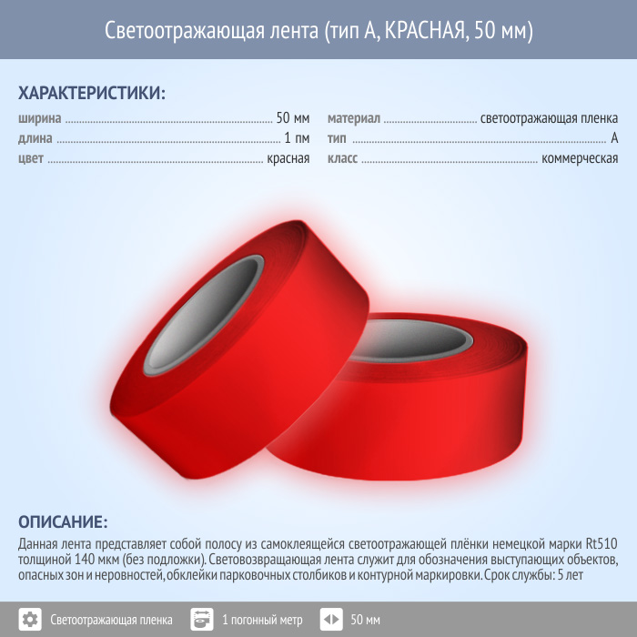 Светоотражающая однородная лента (тип А, КРАСНАЯ, 50 мм х 1 п.м.) в Новокузнецке купить