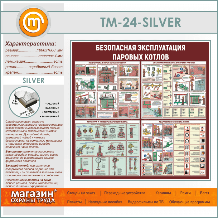 Стенд «Безопасная эксплуатация паровых котлов» (TM-24-SILVER) в Новокузнецке купить