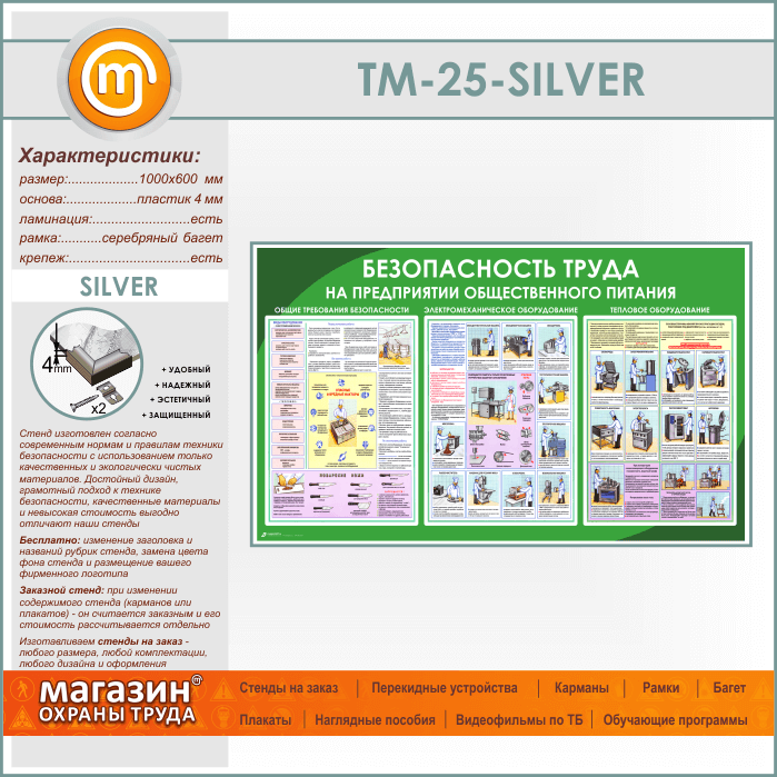 Стенд «Безопасность труда на предприятиях общественного питания» (TM-25-SILVER) в Новокузнецке купить