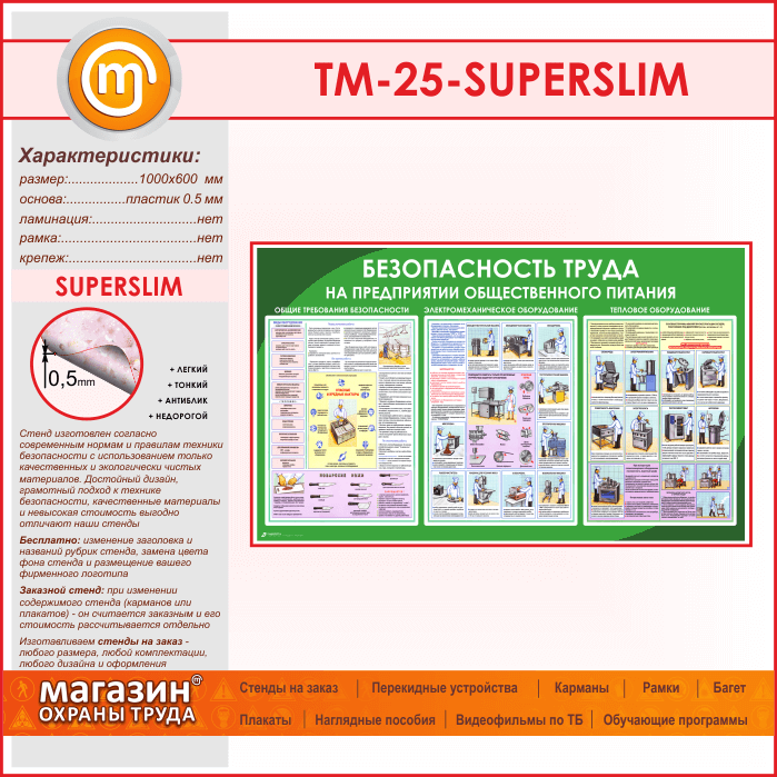 Стенд «Безопасность труда на предприятиях общественного питания» (TM-25-SUPERSLIM) в Новокузнецке купить