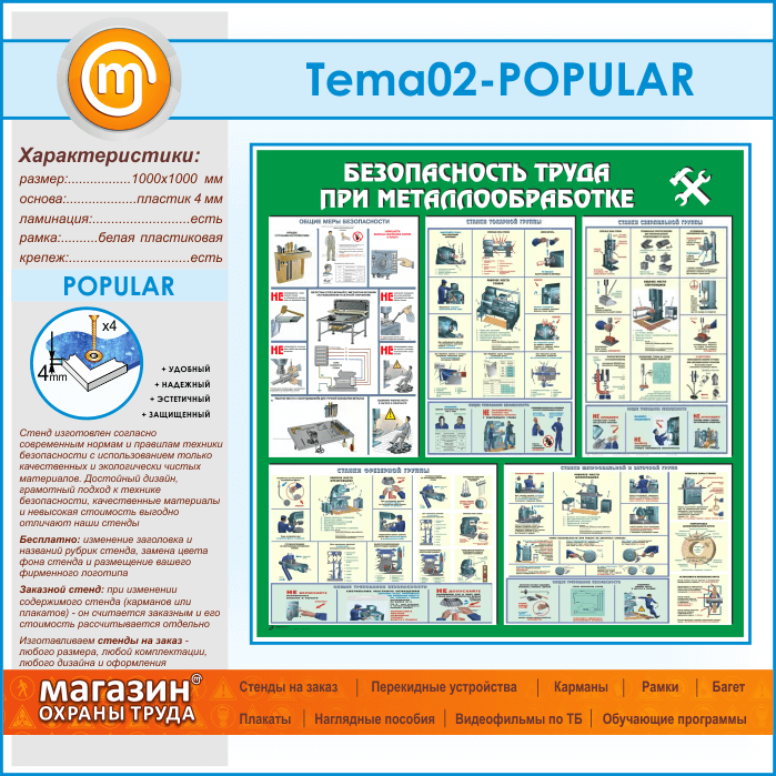 Стенд «Безопасность труда при металлообработке» (TM-02-POPULAR) в Новокузнецке купить