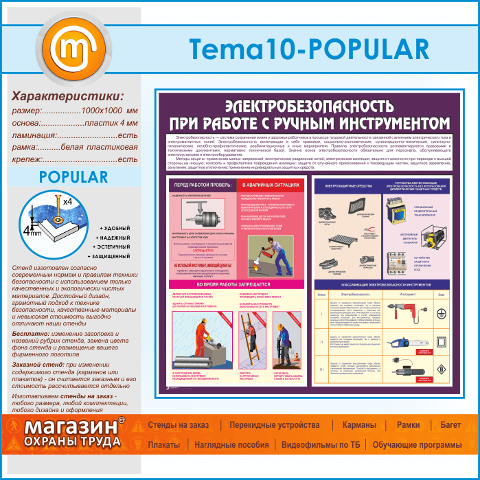 Стенд «Электробезопасность при работе с ручным инструментом» (TM-10-POPULAR) в Новокузнецке купить