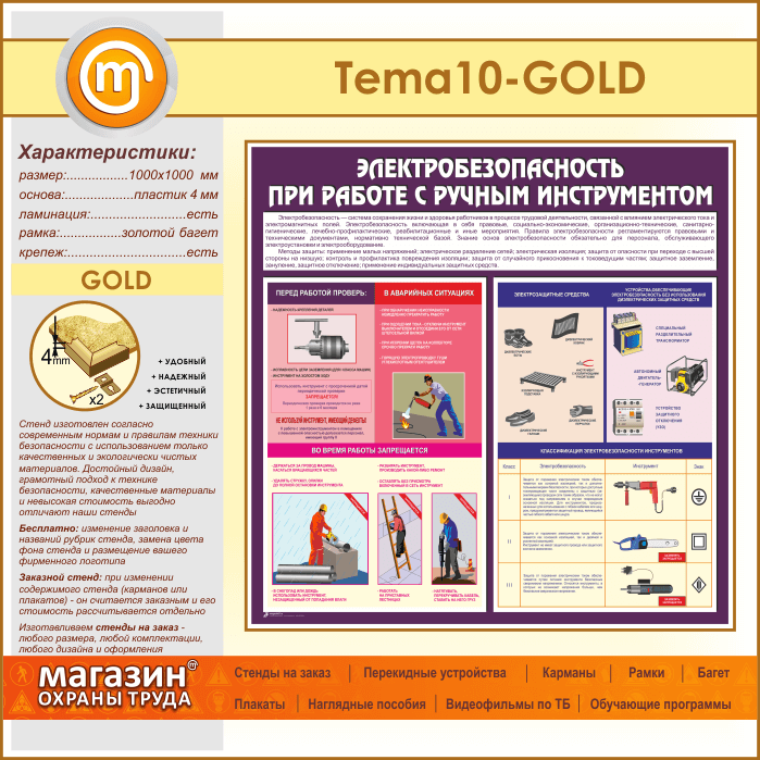 Стенд «Электробезопасность при работе с ручным инструментом» (TM-10-GOLD) в Новокузнецке купить