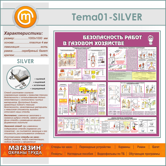 Стенд «Безопасность работ в газовом хозяйстве» (TM-01-SILVER) в Новокузнецке купить