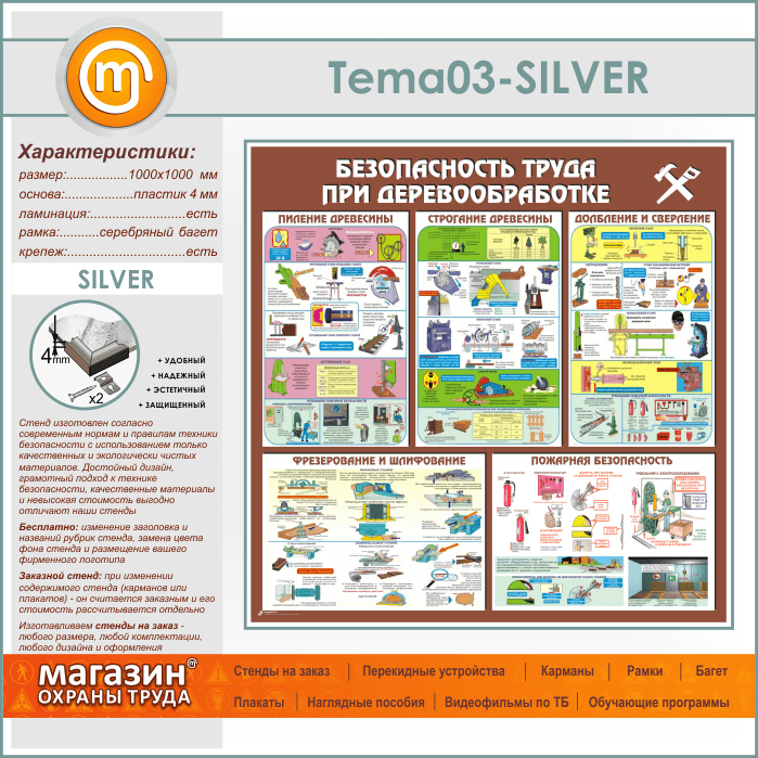 Стенд «Безопасность труда при деревообработке» (TM-03-SILVER) в Новокузнецке купить