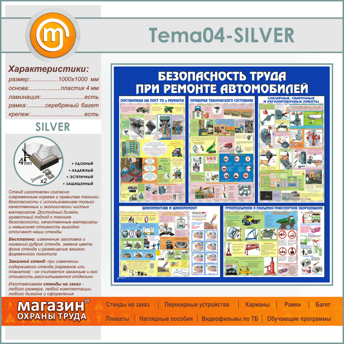 Стенд «Безопасность труда при ремонте автомобилей» (TM-04-SILVER) в Новокузнецке купить