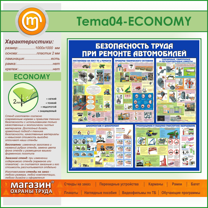 Стенд «Безопасность труда при ремонте автомобилей» (TM-04-ECONOMY) в Новокузнецке купить