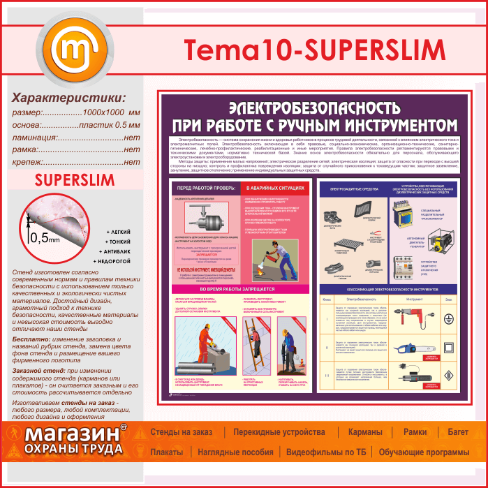Стенд «Электробезопасность при работе с ручным инструментом» (TM-10-SUPERSLIM) в Новокузнецке купить