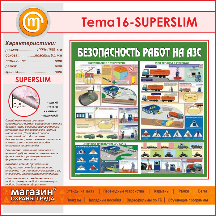 Стенд «Безопасность работ на автозаправочных станциях» (TM-16-SUPERSLIM) в Новокузнецке купить