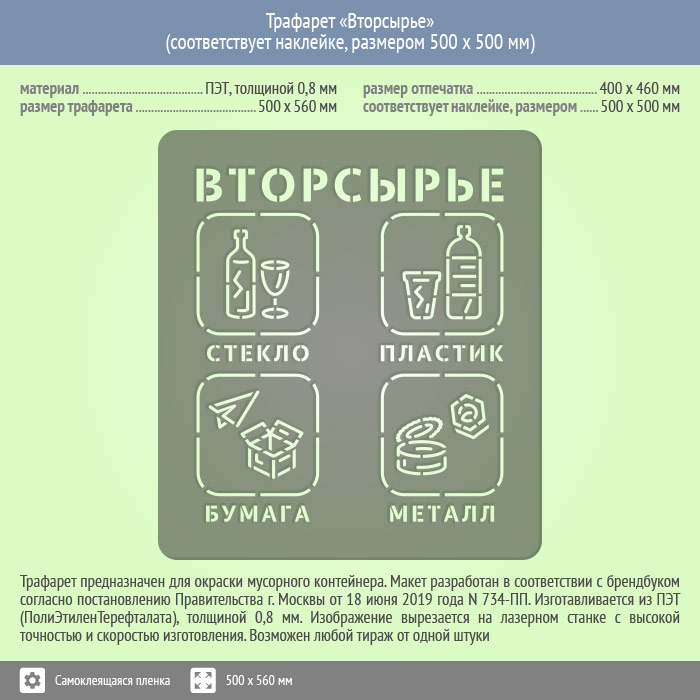 Трафарет «Вторсырье» (соответствует наклейке, размером 500х500 мм) в Новокузнецке купить