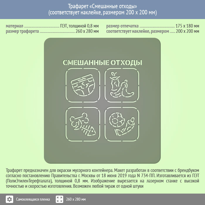 Трафарет «Смешанные отходы» (соответствует наклейке, размером 200х200 мм) в Новокузнецке купить