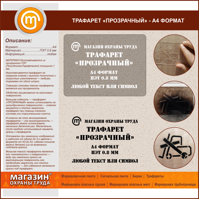 Трафарет «ПРОЗРАЧНЫЙ» (А4 формат, ПЭТ 0,8 мм) в Новокузнецке купить